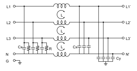 | Model No. | Rated Current @40°C | Terminal Options* | Leakage current 440V/50Hz | Electrical Schematic | Rated Voltage(V) | Operating Frequency(Hz) | ||||||||||||||||||||||||||||||